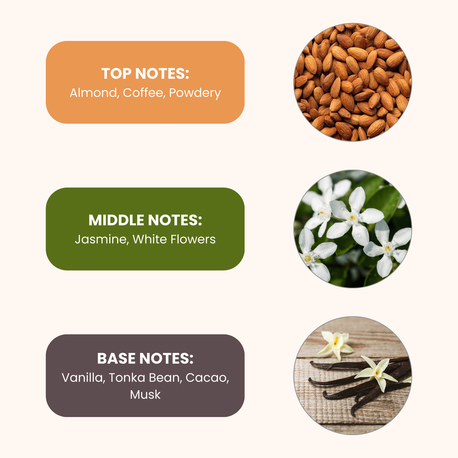 • Base Notes: Vanilla, Tonka Bean, Cacao, Musk