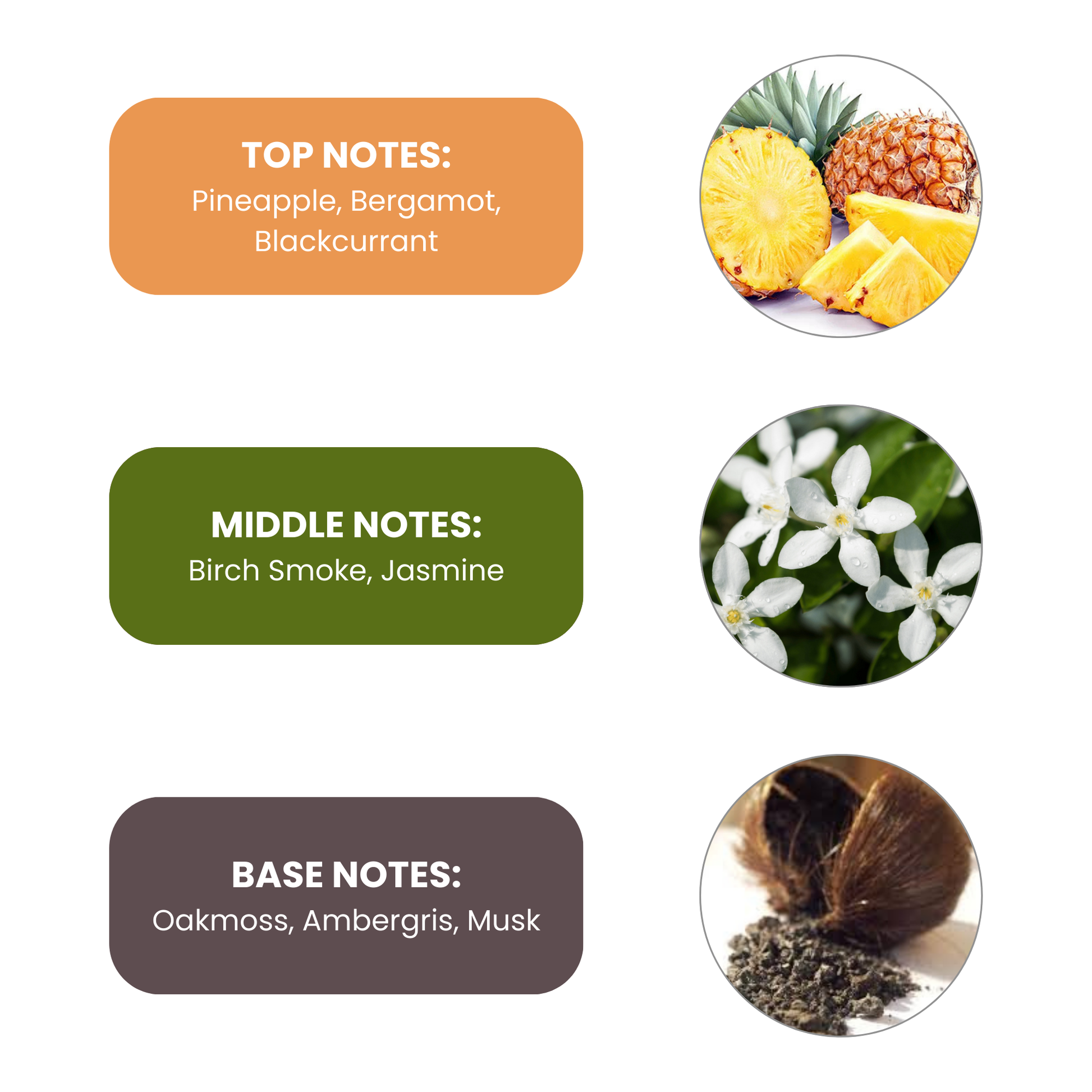 • Top Notes: Pineapple, Bergamot, Blackcurrant